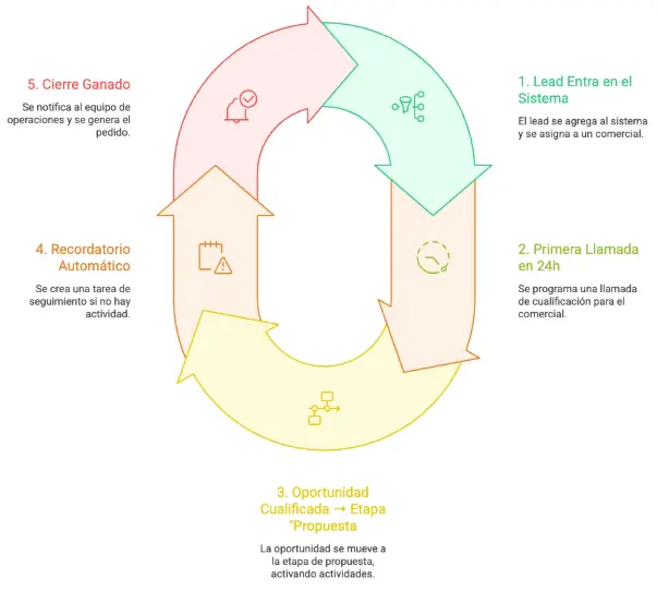 5. Cierre ganado → notificación al equipo de operaciones